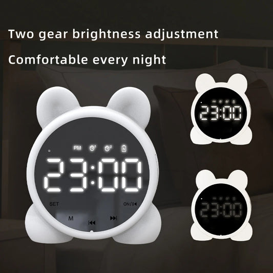 Cute Children's Bluetooth Speaker Alarm Clock Children Sleep Bedside Alarm Clock Bedroom Kid Electronic Clock Snooze Alarm Clock